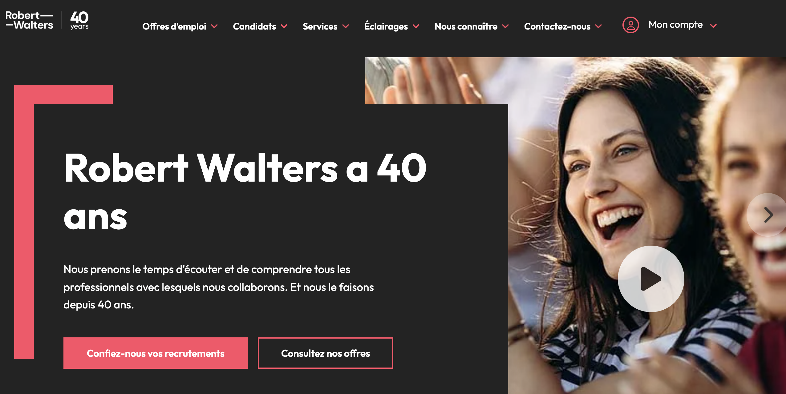 Robert Walters cultive un positionnement premium qui se reflète dans la qualité de son service, la rigueur de ses processus, et le professionnalisme de ses consultants. Les cabinets clients bénéficient d'un accompagnement structuré, de reportings réguliers, et d'un niveau de service élevé tout au long du processus de recrutement.