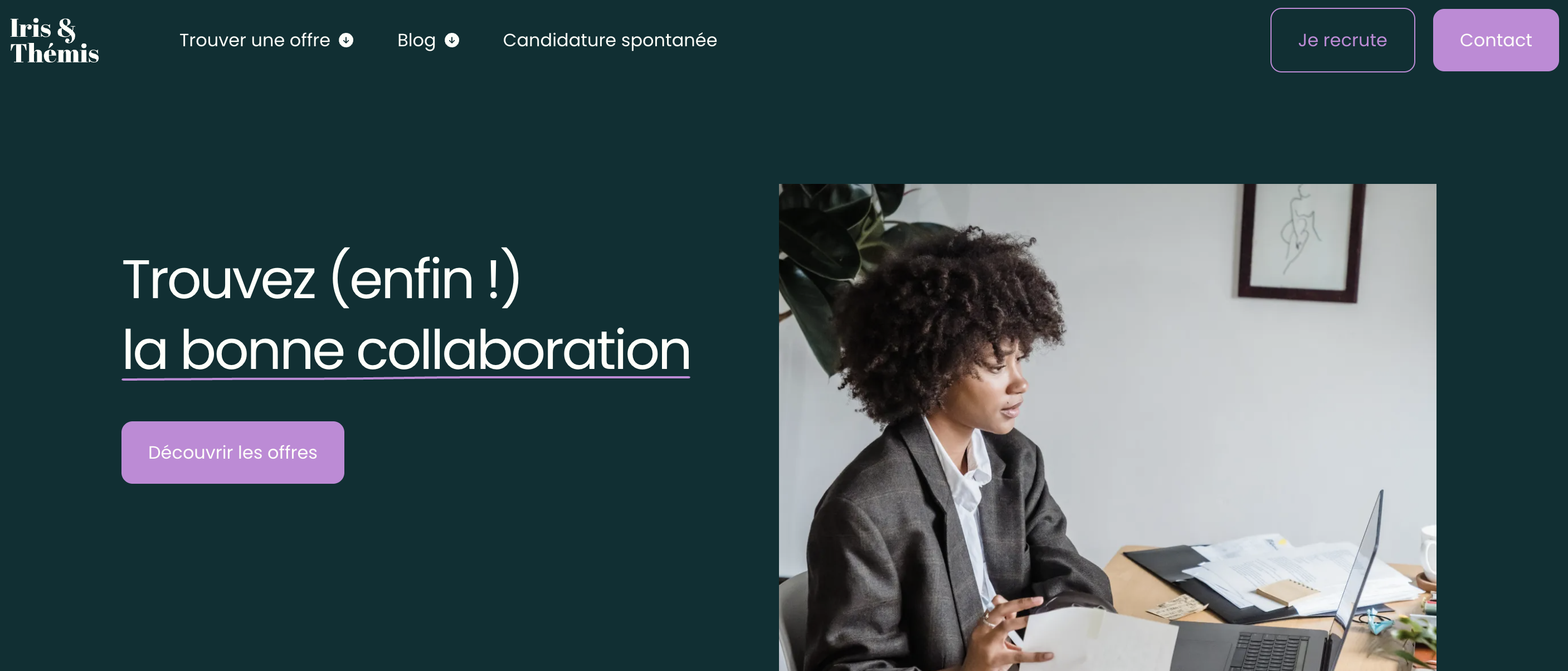 À l'instar de Neria mais avec un positionnement légèrement différent, Iris & Thémis ne recrute que pour le secteur juridique. Cette focalisation absolue garantit que les consultants parlent votre langage, comprennent immédiatement vos enjeux, et possèdent une connaissance fine des différentes pratiques juridiques, des profils d'avocats, et des dynamiques propres au secteur.
