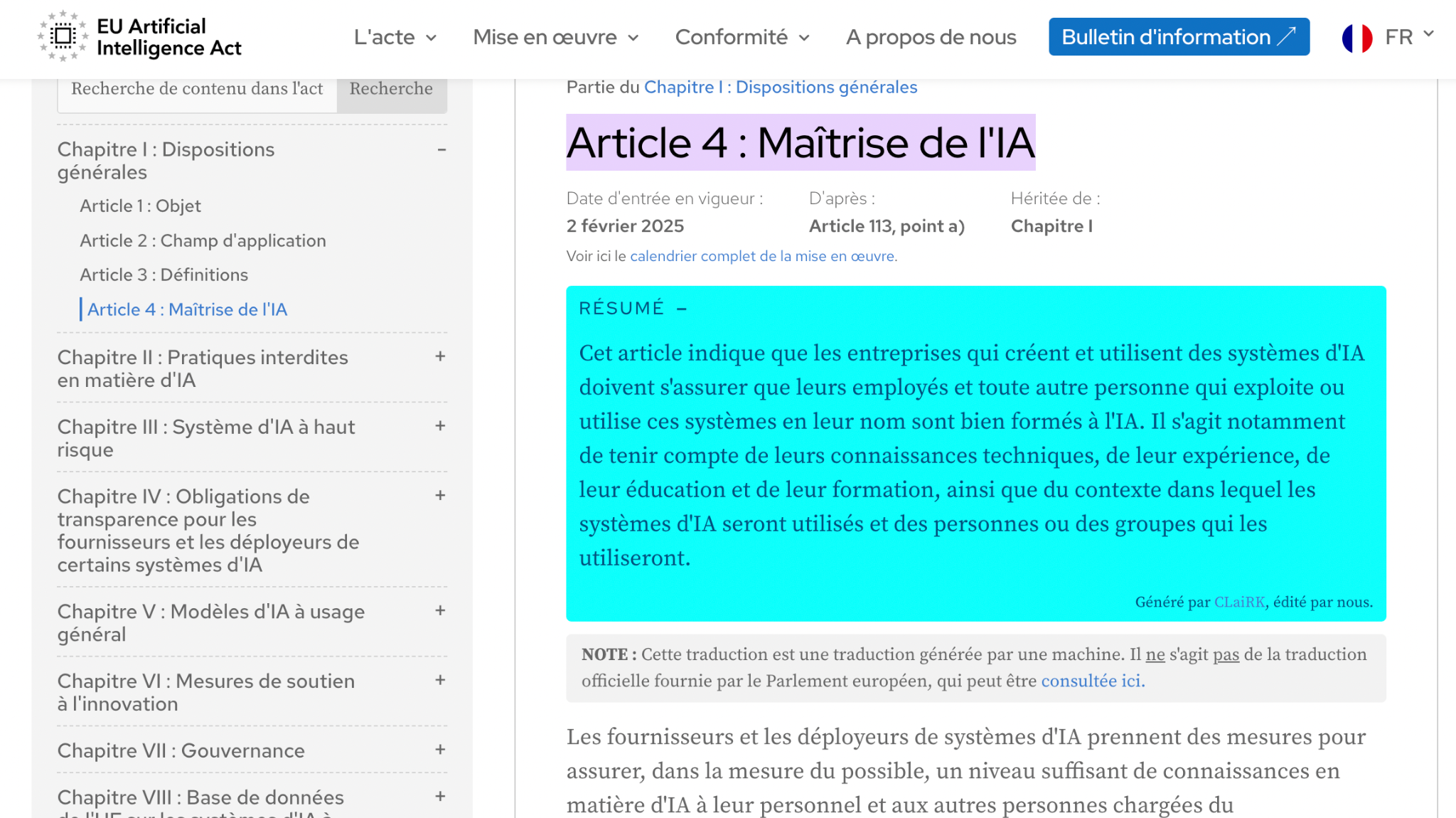 L'article 4 de l'AI Act exige une formation adaptée au rôle et au contexte d'utilisation.