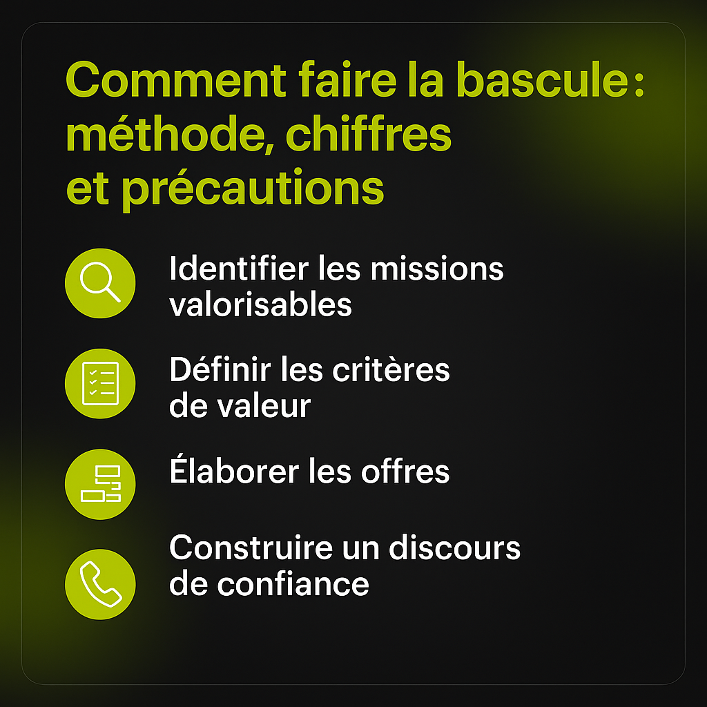 Il quitte le terrain du “temps vendu” pour celui du “résultat livré”.