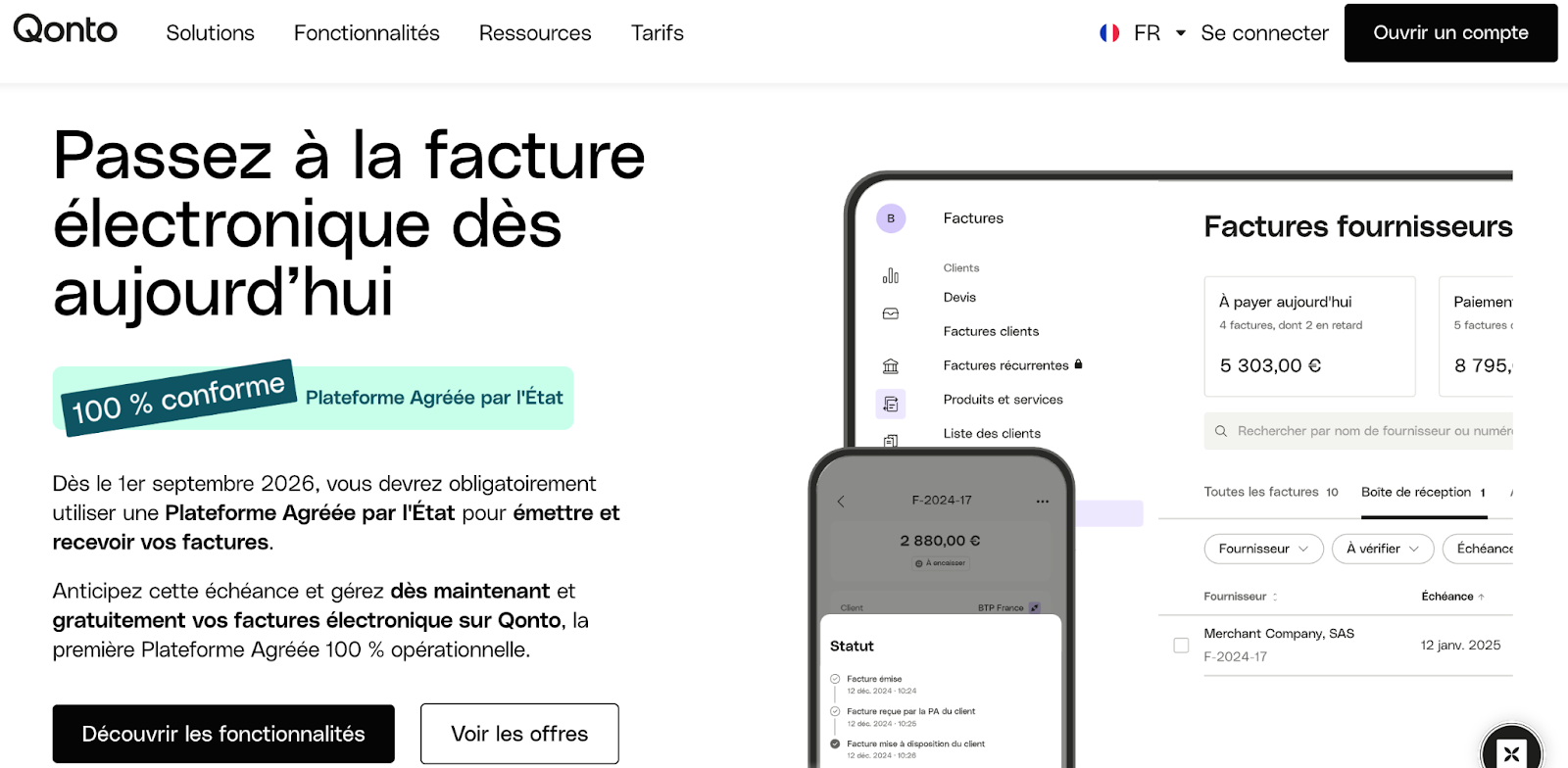 Légende : Un exemple de logiciel gérant la facturation électronique : Qonto.