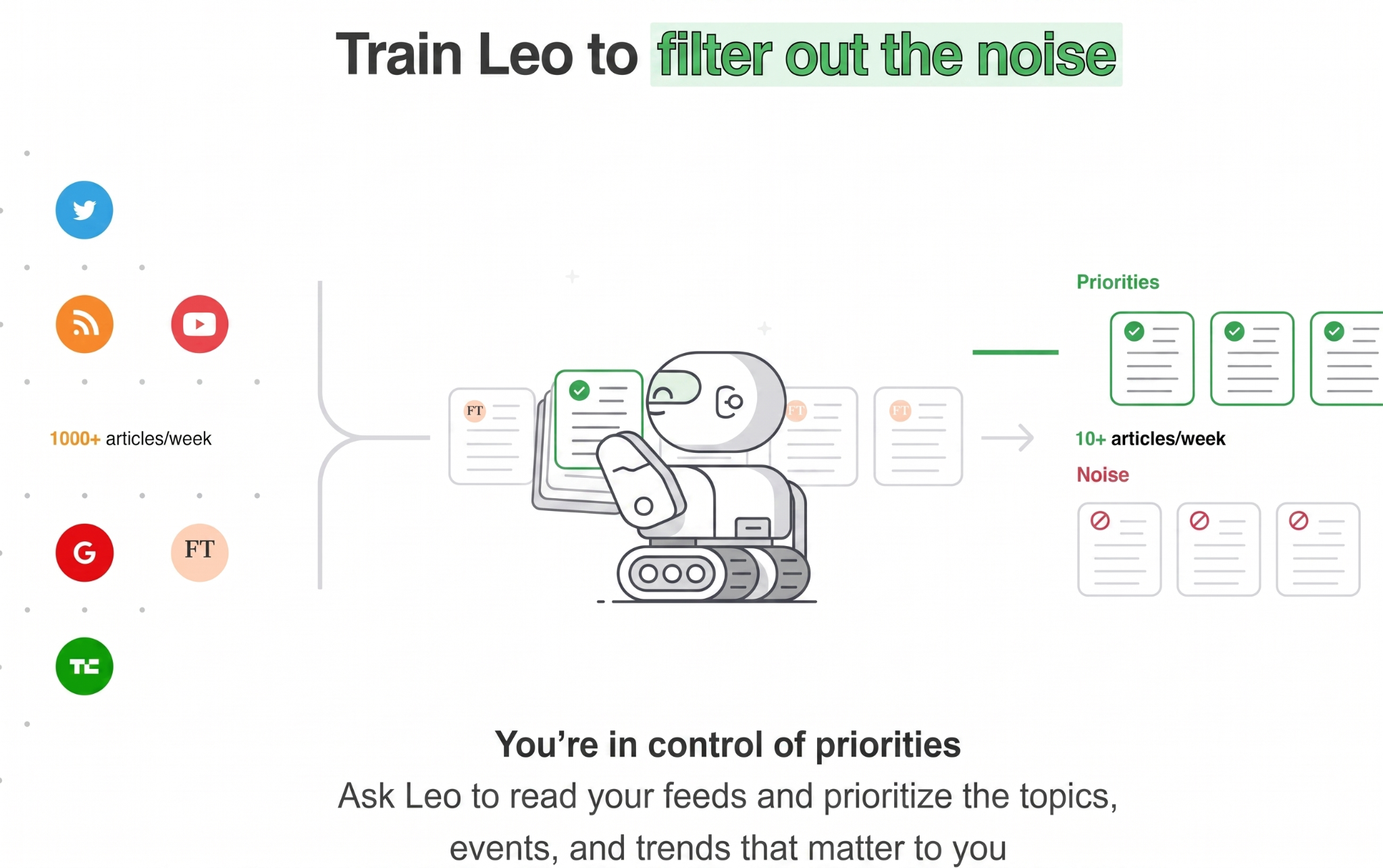 Intégrée à Feedly à partir de l’abonnement Pro+, Léo est l’assistant IA qui apprend à prioriser vos flux selon des mots-clés que vous définissez.